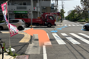 そのまま直進して信号を渡り左折